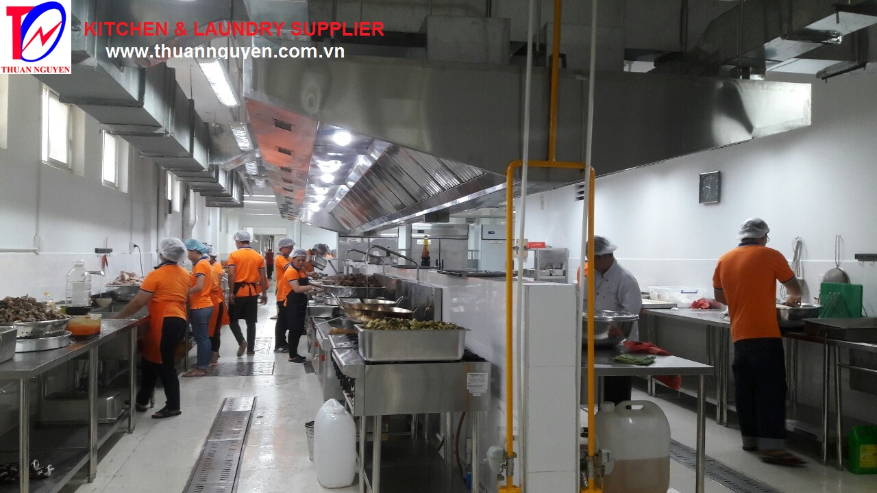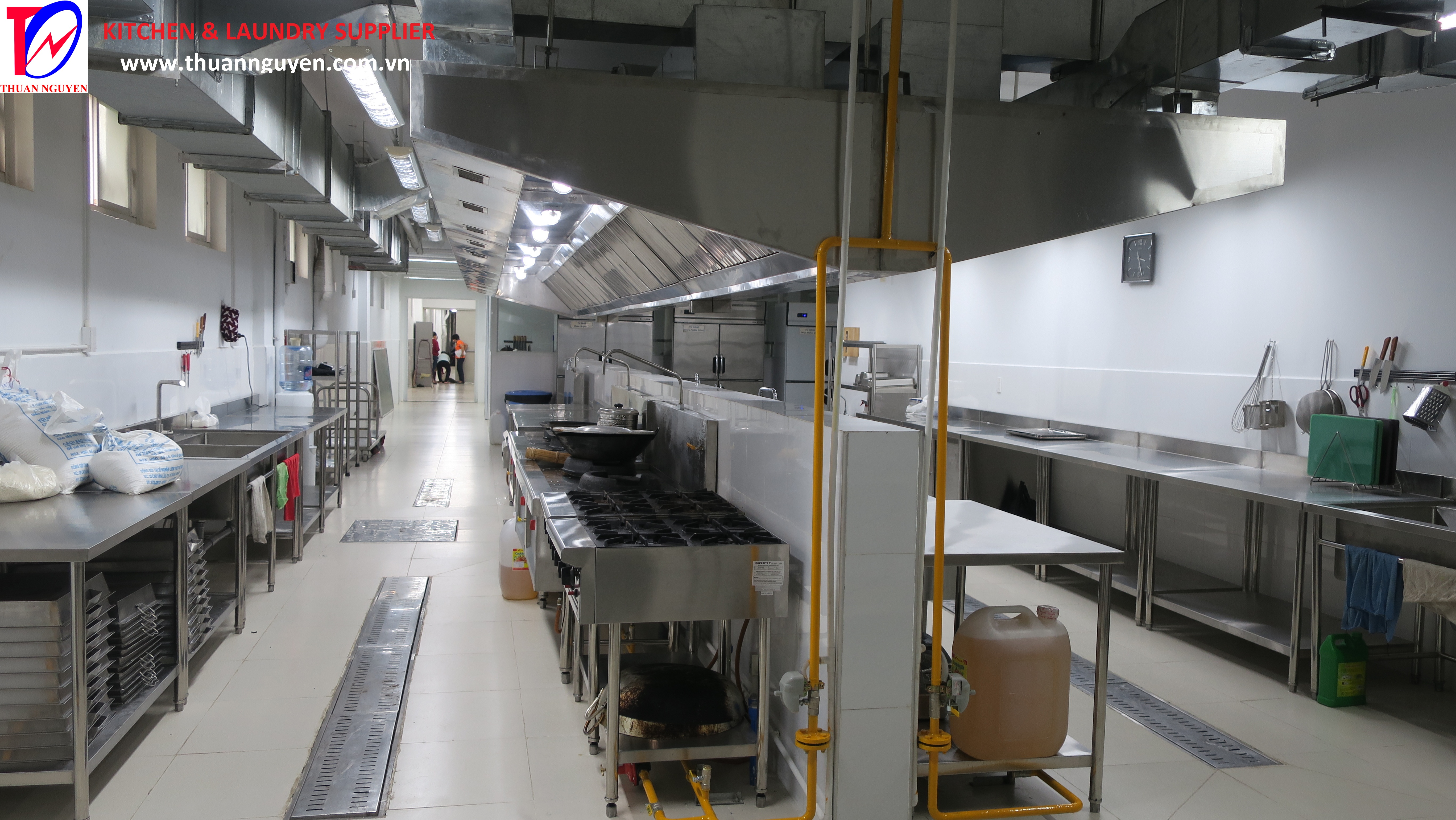 - Tại khu bếp nấu chính này sử dụng chủ yếu thiết bị inox nhà bếp trường học như : bếp á công nghiệp, bếp hầm kiềng vuông dạng thấp hoặc dạng cao, bếp âu, tủ hấp cơm, tủ giữ nóng thức ăn và đặt biệt là thiết bị chụp hút khói công nghiệp giúp khử hút mùi, hút nhiệt cho khu bếp